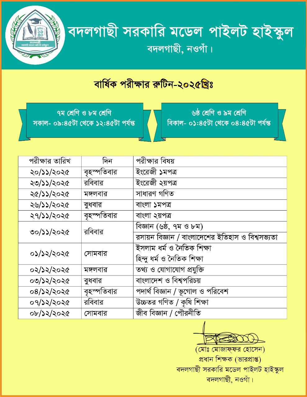 বার্ষিক পরীক্ষার রুটিন-২০২৫